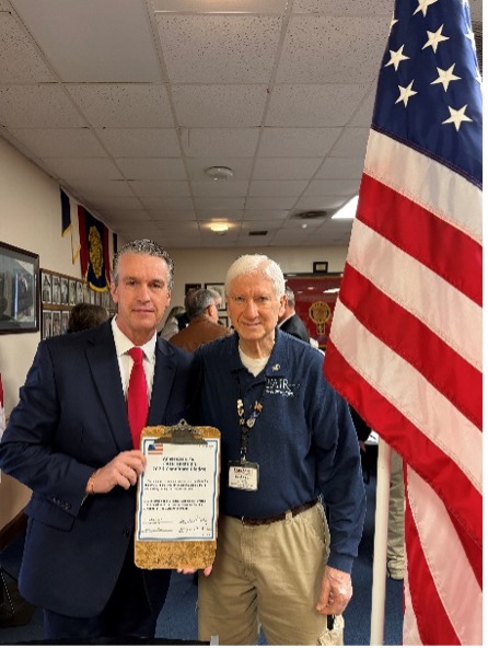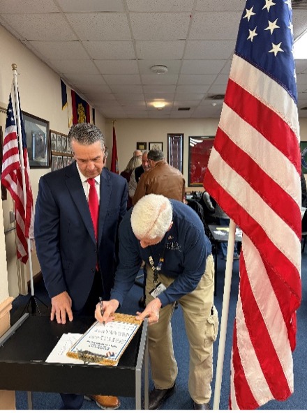 Congressman Barry Moore, representing the First Congressional District of Alabama, qualified as a candidate for U.S. Senator from Alabama. Americans For Fair Taxation’s (AFFT) State Director Chuck Bailey met with him to obtain his signature on the 2026 FAIRtax Pledge. That occasion was photographed and is illustrated below; Moore signing the Pledge, Bailey witnessing his signature.