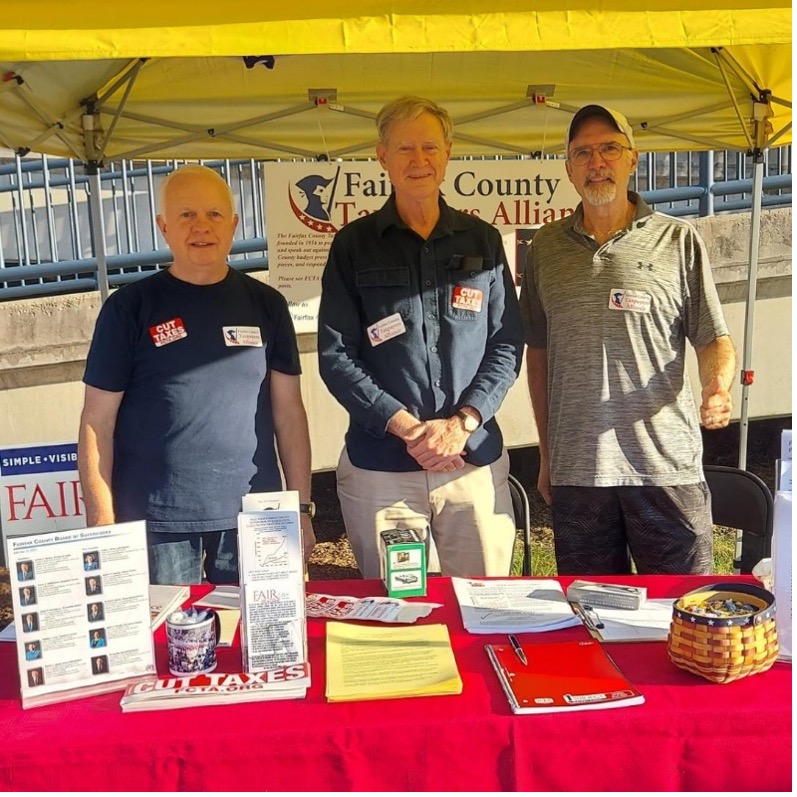 The FCTA initiated its first outreach program at the Burke Center Farm Market and has since expanded to other Fairfax County farm markets. The objective each time is to educate and inform Fairfax County taxpayers and residents about the harmful effects of high taxes and provide guidance on how they can address this problem.